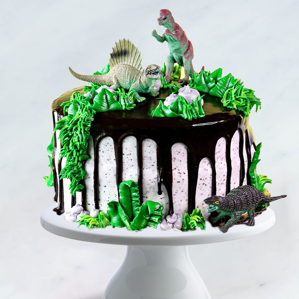 Cake can be customized to suit your wishes. Toy dinosaurs to be provided by customer.